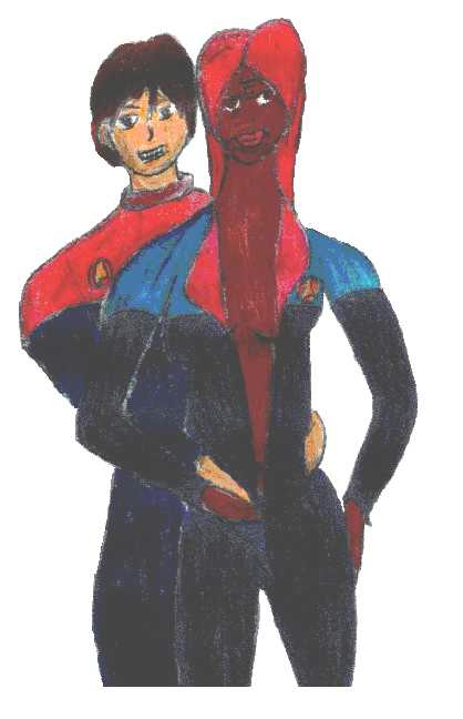 "Sailor Poison " did this picture of Lera and K'Lynxyl, demonstrating their affections for the Captian in an, unusual fashion (may not show on all browsers).