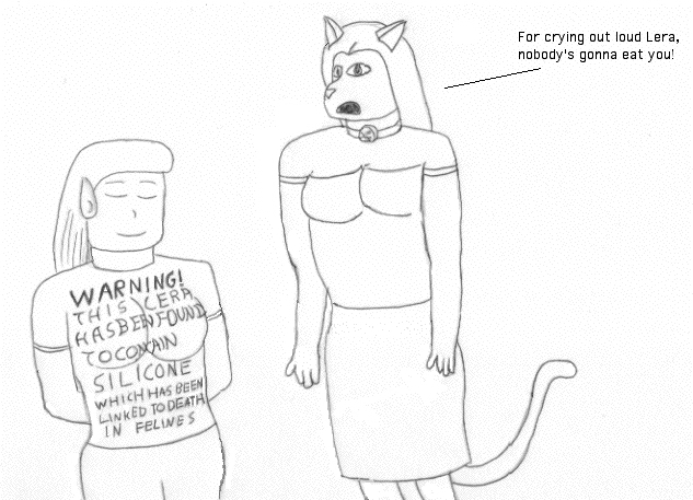 Lera and Lynx do not exactly get along. Lynx being a tall felinoid, little Lera thinks, "SHE WANTS TO EAT ME!"
